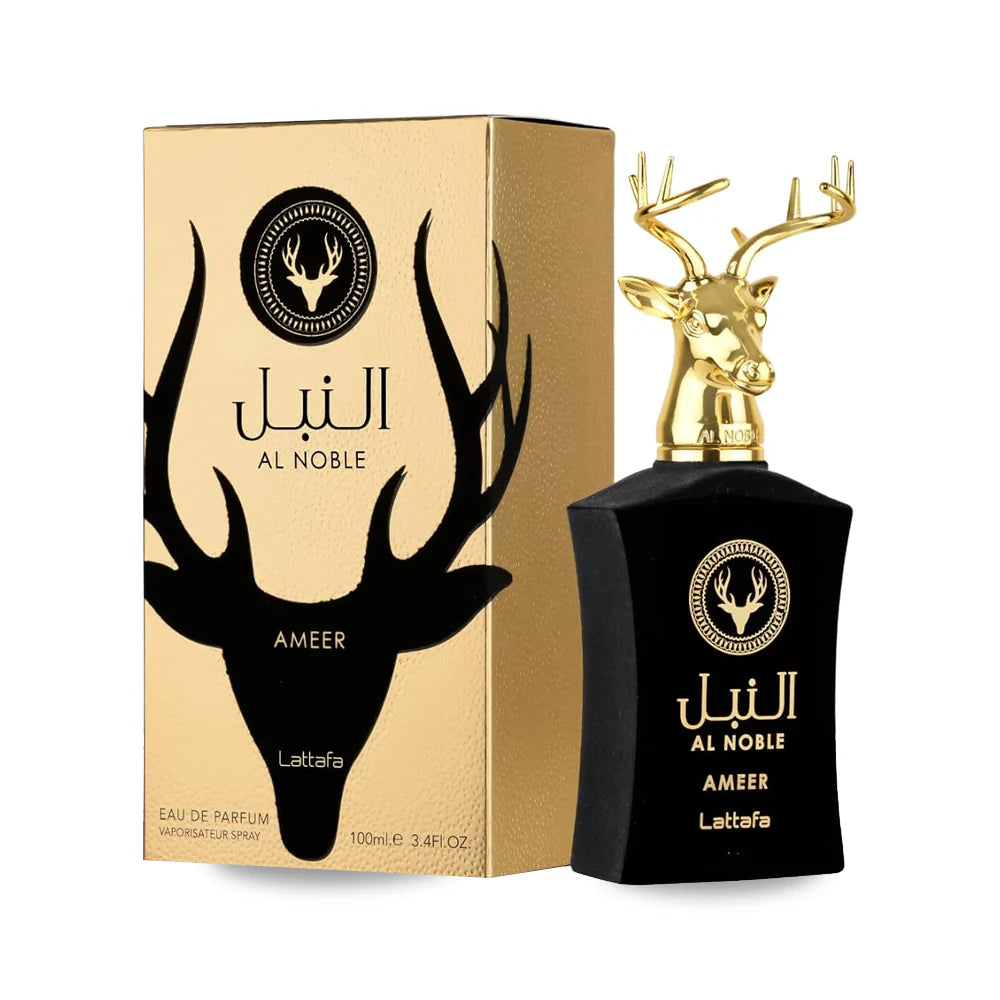 Al Noble Ameer - Unisex By Lattafa is a refined and majestic fragrance that embodies luxury, sophistication, and timeless elegance. Blending fresh citrus and spicy accords with delicate florals and a deep, woody base, it creates a powerful and unforgettable aura. Perfect for both men and women, this scent leaves a lasting impression of strength and charm.