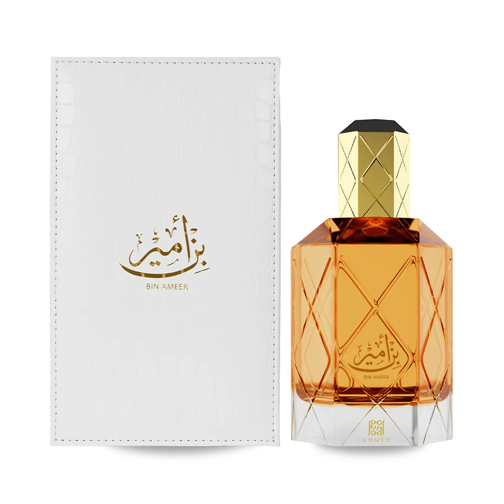 Bin Ameer - Unisex By Ahmed Al Maghribi is a refined and captivating fragrance that combines freshness with subtle oriental sophistication. It opens with bright citrus and fruity accords, creating an uplifting and invigorating start. The heart reveals a harmonious blend of delicate florals and soft spices, adding depth and elegance. Finally, the base of warm amber, musk, and woody notes leaves a sensual and long-lasting trail. Perfect for both men and women who seek a versatile and elegant scent for any occasion.