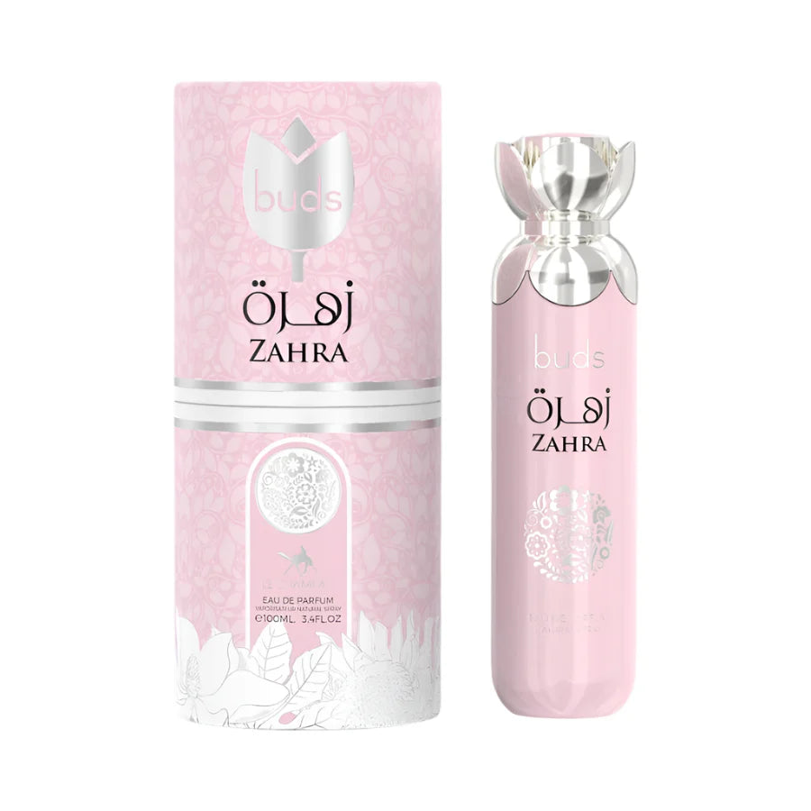 Buds Zahra - Women By Le Chameau is a captivating Eau de Parfum inspired by the timeless beauty of blooming flowers. Encased in a graceful 3.4 oz (100 ml) bottle, this fragrance combines fresh citrus, luminous florals, and soft musky-woody notes, creating an aura of elegance and femininity. With its moderate projection and long-lasting performance (6–8 hours), it is perfect for both everyday sophistication and evening charm.