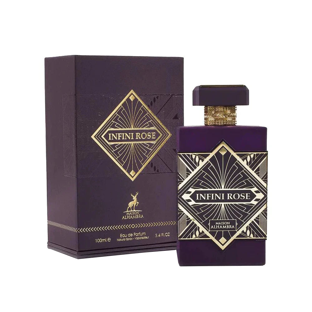 Infini Rose - Unisex By Maison Alhambra is a timeless and luxurious fragrance that captures the elegance of rose in its purest form. It opens with fresh citrus and fruity accords, creating a bright and uplifting beginning. The heart is enriched with lush roses, blended with delicate florals and gentle spices, adding depth, romance, and refinement. Finally, the base of musk, amber, and soft woods leaves a warm, sensual, and long-lasting trail. Perfect for both men and women who appreciate a fragrance that embodies sophistication, charm, and lasting beauty.