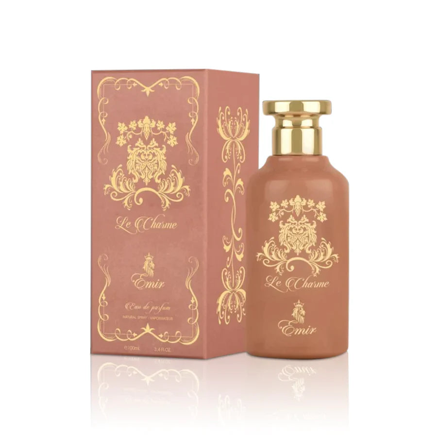 Le Charme Emir - Unisex By Paris Corner is a sophisticated and captivating fragrance that radiates elegance, allure, and refinement. It opens with fresh and sparkling citrus accords, creating an invigorating and uplifting introduction. The heart reveals a graceful blend of delicate florals, soft spices, and subtle fruity notes, adding depth, richness, and charm. Finally, the base of amber, musk, and smooth woods leaves a long-lasting, sensual, and memorable trail. Perfect for both men and women who seek a versatile fragrance that combines freshness with luxurious oriental sophistication.