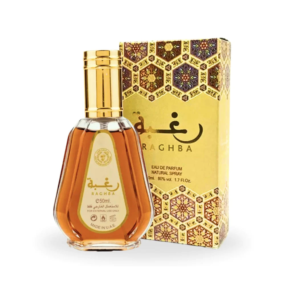 Raghba - Unisex By Ard Al Zaafaran is a sophisticated Eau de Parfum that blends sweet, smoky, and woody notes into a luxurious and captivating fragrance. Encased in an elegant bottle, this scent exudes a versatile and bold appeal. Launched in 2014, it is known for its excellent longevity (around 8-10 hours) and strong projection, making it especially suitable for evening wear or cooler seasons.